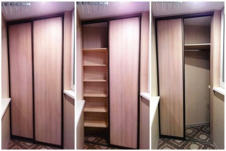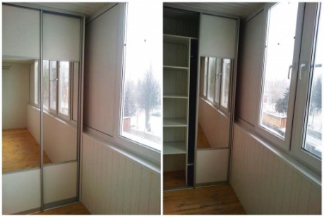 Если стены балкона кривые, рекомендуется делать встроенный шкаф с боковинами, чтобы мебель плотно прилегала к стенам.